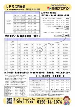 つきましては、2023年1月検針分よりLPガス料金の値上げを実施させていただきます。