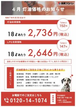 いつも「高橋プロパンあったか灯油」をご利用いただき、ありがとうございます。
