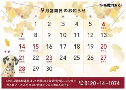 9月の営業日をお知らせいたします。